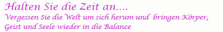 Erwärmen Sie ihr Herz zunächst mit einem Saunagang und lassen im wahrsten Sinne des Wortes die Alltagssorgen verdampfen. Während der anschließenden Ruhezeit konzentrieren Sie sich wieder auf das wesentliche Sich-Selbst. |